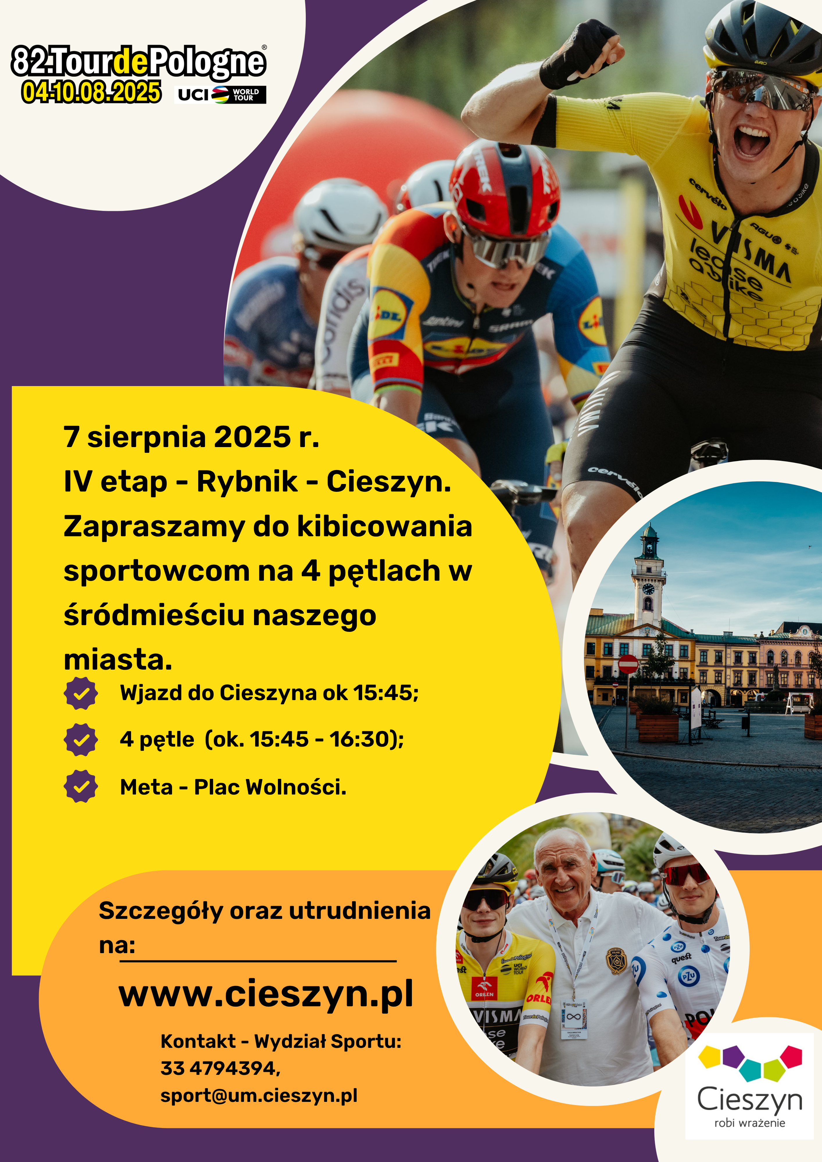 Organizatorzy zwracają się z prośbą o śledzenie aktualnych komunikatów w sprawie Tour de Pologne w miejskich kanałach informacyjnych Urzędu Miejskiego w Cieszynie.