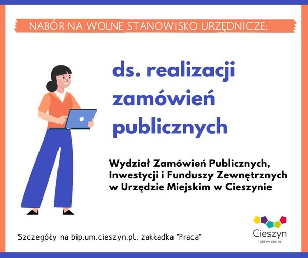2025-08-12ℹ Burmistrz Miasta Cieszyna ogłasza nabór na wolne stanowisko urzędnicze ds. realizacji zamówień publicznych w Wydziale Zamówień Publicznych, Inwestycji i Funduszy Zewnętrznych.