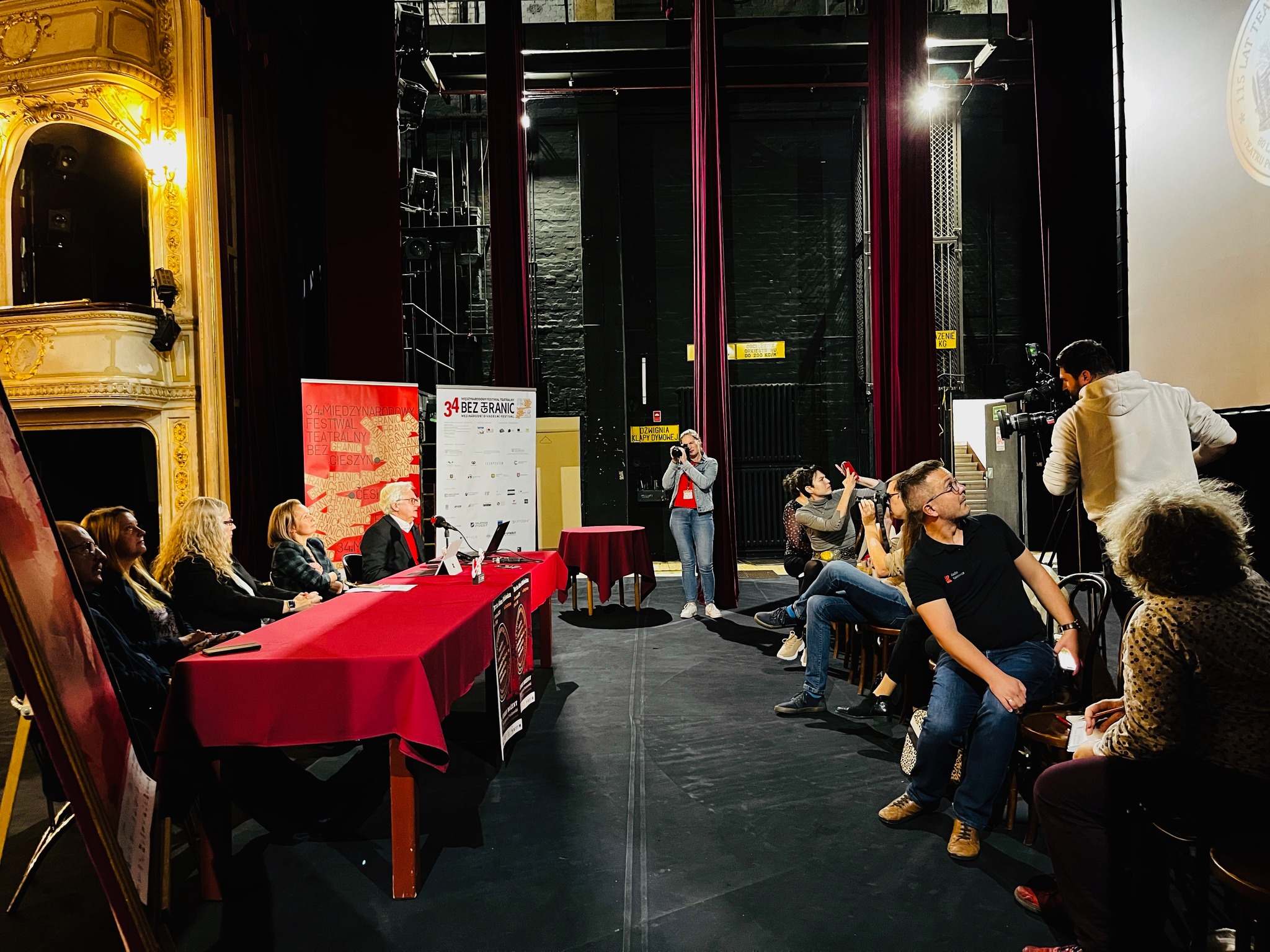Zdjęcie z konferencji prasowej poświęconej Festiwalowi Teatralnemu Bez Granic/Bez hranic
