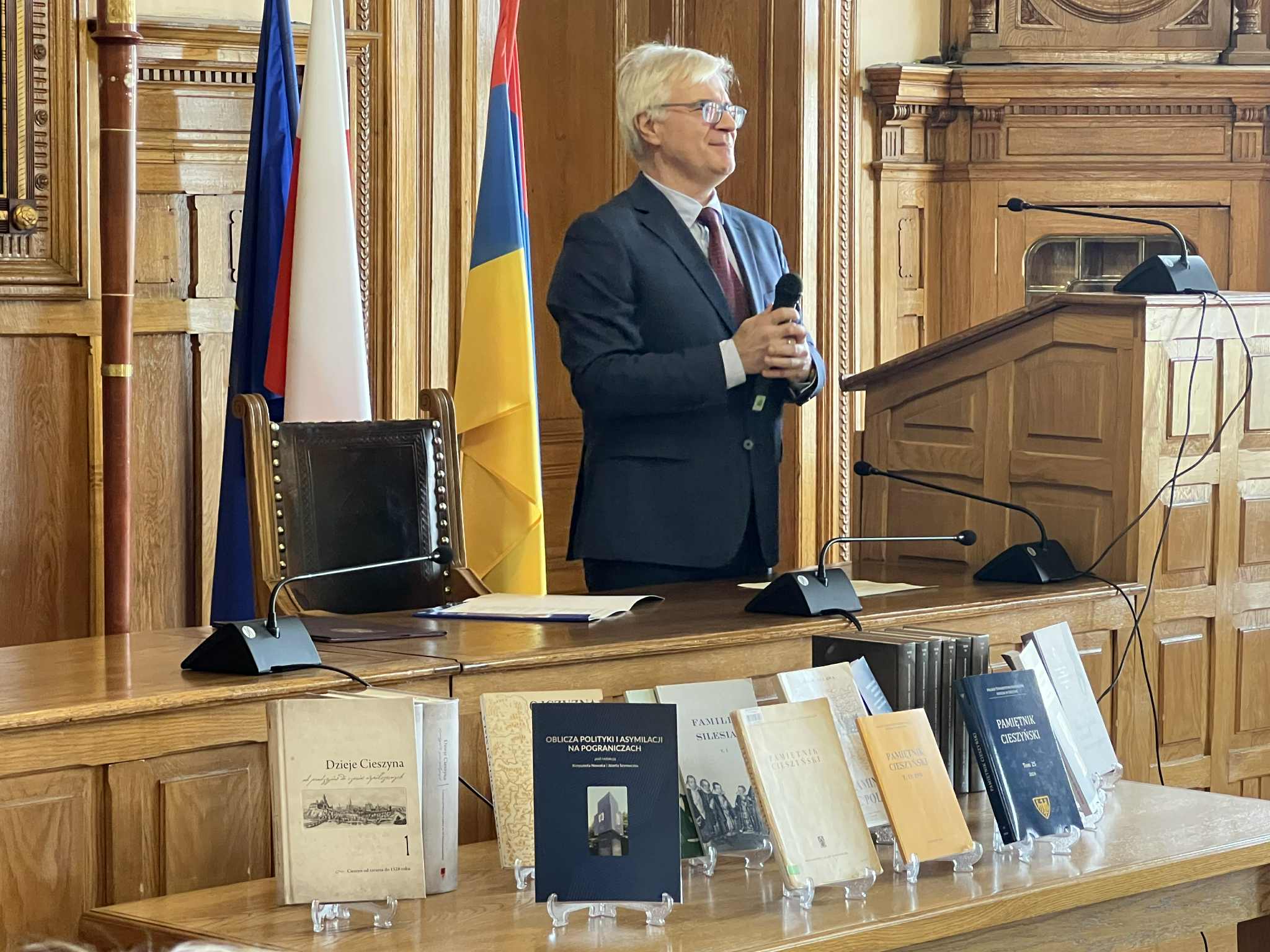 2025-10-17W 2025 roku cieszyński Oddział Polskiego Towarzystwa Historycznego obchodzi jubileusz 70-lecia. Z tej okazji 16 października w Sali Sesyjnej cieszyńskiego Ratusza odbyło się uroczyste spotkanie, w którym udział wzięli między innymi przedstawiciele Zarządu Głównego Polskiego Towarzystwa Historycznego - Prezes PTH prof. Robert Litwiński, Prezes cieszyńskiego oddziału prof. Wacław Gojniczek i Sekretarz Generalny Polskiego Towarzystwa Historycznego prof. Jarosław Kłaczkow, poprzedni prezesi cieszyńskiego PTH, członkowie Oddziału i zarządów najbliższych Oddziałów, przedstawiciele instytucji kultury i nauki z Cieszyna oraz okolicy.