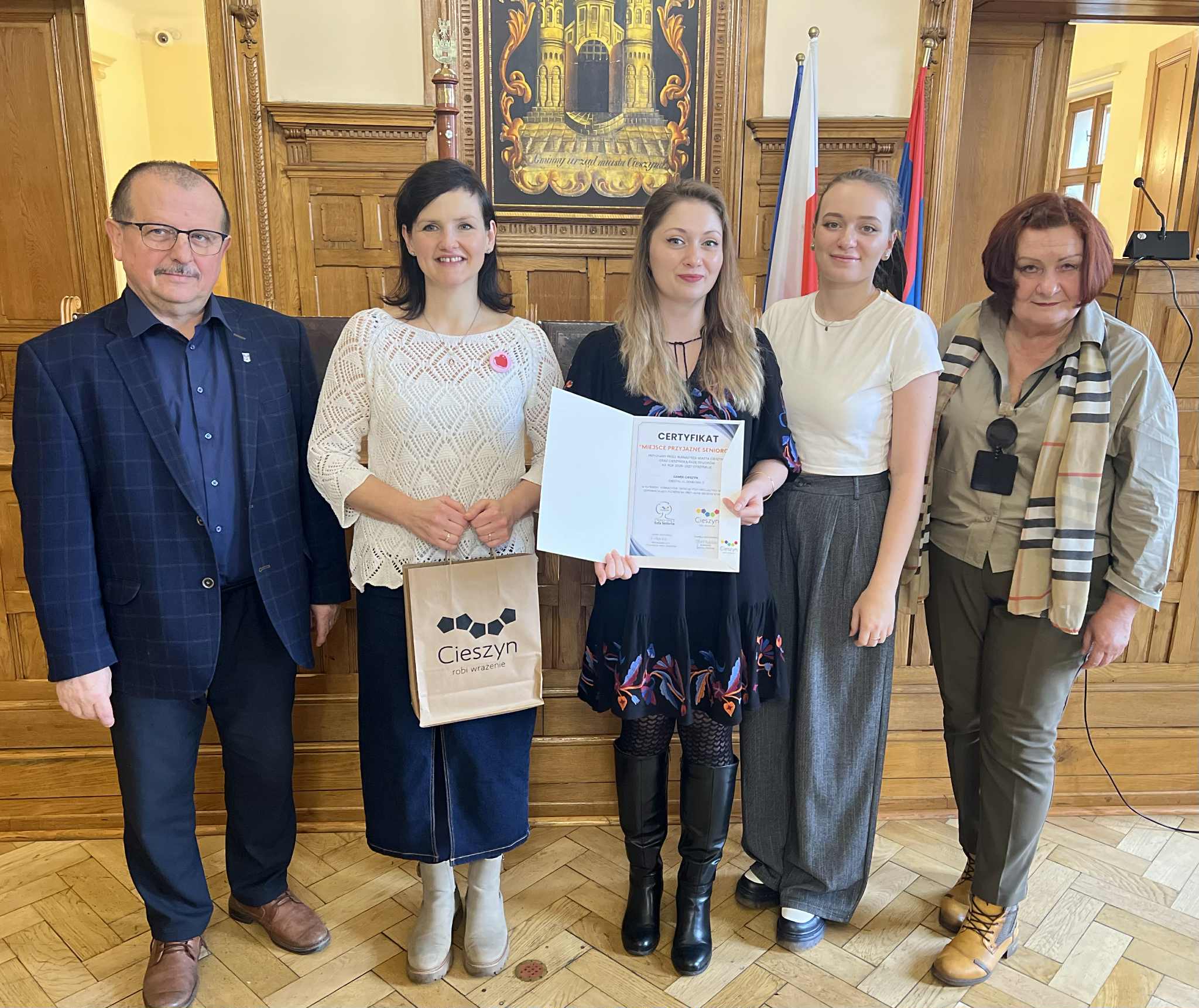 2025-12-1511 grudnia w Sali Sesyjnej cieszyńskiego Ratusza odbyło się oficjalne wręczenie Certyfikatów „Miejsce Przyjazne Seniorom”, które stało się wyjątkową okazją do podkreślenia znaczenia przestrzeni przyjaznych osobom starszym w naszym mieście. Uroczystość odbyła się w miłej, kameralnej atmosferze, a gratulacje i podziękowania dla wyróżnionych podmiotów złożyli Krzysztof Kasztura - I Zastępca Burmistrza Miasta Cieszyna oraz Janina Cichomska - Przewodnicząca Cieszyńskiej Rady Seniorów.