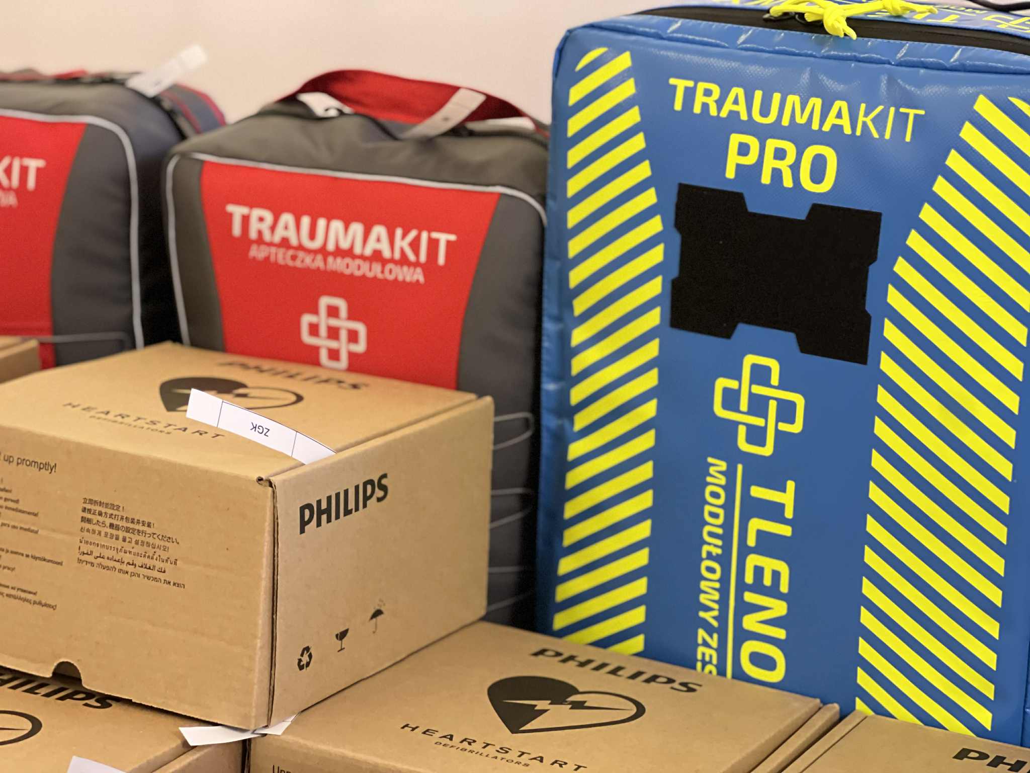 🔸zestawy apteczek modułowych wyposażonych w defibrylator AED