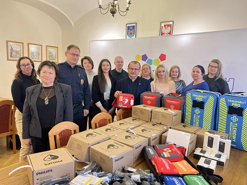 Łącznie przekazano 16 zestawów defibrylatorów AED Philips FRx Standard w torbach, wyposażonych w klucz pediatryczny. Sprzęt trafił do jednostek miejskich oraz Urzędu Miasta.
