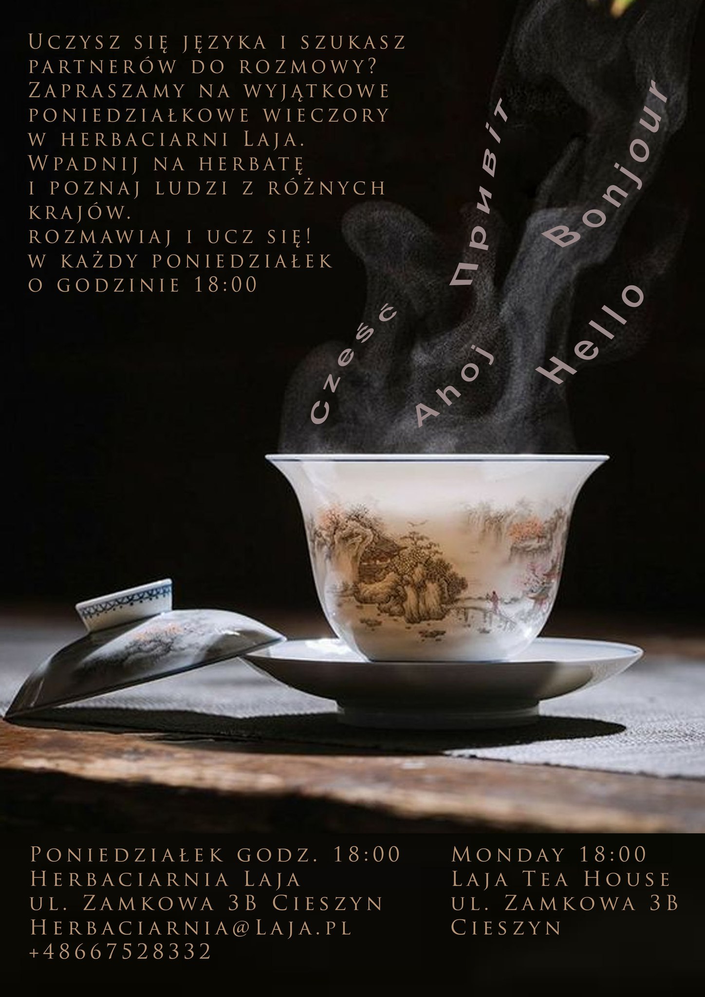 29.07, 18:00Uczysz się języka i szukasz partnerów do rozmowy?Zpraszamy na wyjątkowe poniedziałkowe wieczory w Herbaciarni Laja.Wpadnij na herbatę i poznaj ludzi z różnych krajów!Rozmawiaj i ucz się!
