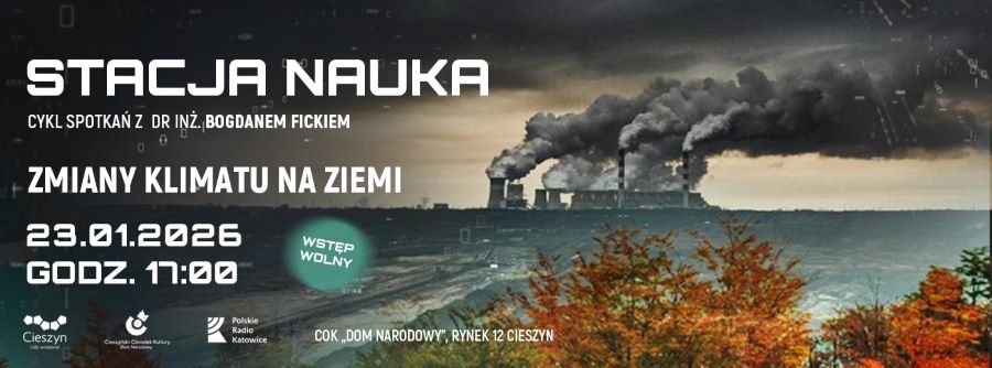 Cieszyński Ośrodek Kultury "Dom Narodowy" zaprasza na pierwsze w nowym roku spotkanie naukowe z dr. inż. Bogdanem Fickiem z cyklu STACJA NAUKA. W piątek 23 stycznia o godzinie 17:00 w Domu Narodowym pochylimy się wspólnie nad tematem zmian klimatycznych. Podczas prelekcji przedstawiona zostanie historia zmian klimatu na ziemi w ciągu ostatnich 500 mln lat, a także przyczyny aktualnych zmian klimatu oraz skutki tych zmian dla ludzkości.