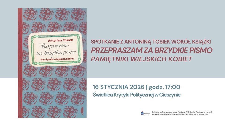 Działanie finansowane przez Fundację PKO Banku Polskiego w ramach projektu „Rozwój instytucjonalny Świetlicy Krytyki Politycznej w Cieszynie”