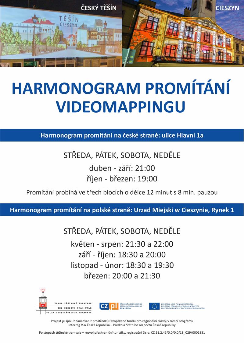 Harmonogram mappingu w Czeskim Cieszynie: ulica Główna 1a (budynek Euroregionu w pobliżu Mostu Przyjaźni)